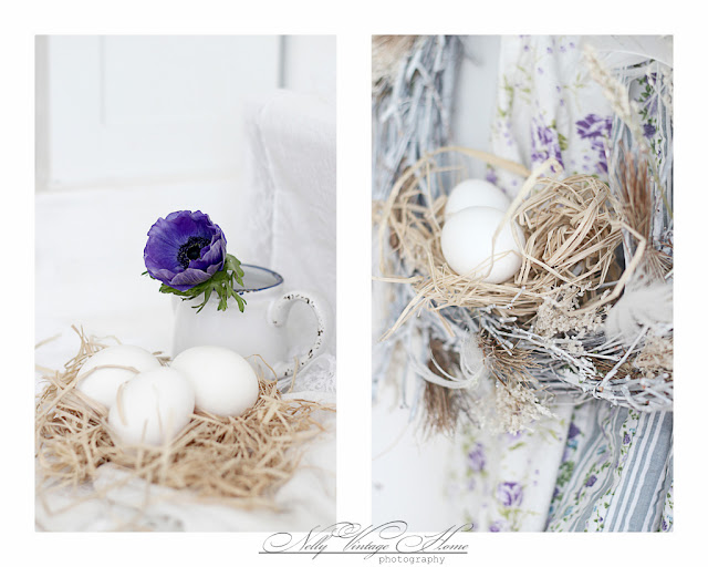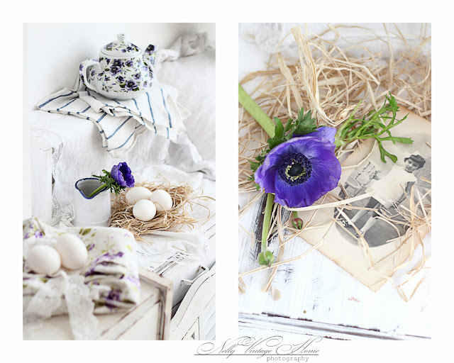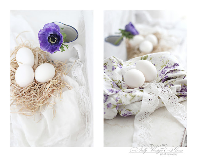 Здравейте приятели, днес искам да ви покажа моите рисувани яйца. Много са лесни за изпълнение. Първо изчистих добре яйцата от вътрешността им и ги изсуших добре. Аз използвах темперна боя за рисунката, но може да се използва и акрилна даже и латекс с оцветители... Някои от яйцата боядисах до половината, а на други направих овални рамки от бледо лилавата боя. След това просто си нарисувах малки цветенца на границата между двата цвята. Без много старание, защото след като изсъхнаха добре ги измих с гъба, за да изглеждат надраскани и по-интересни.